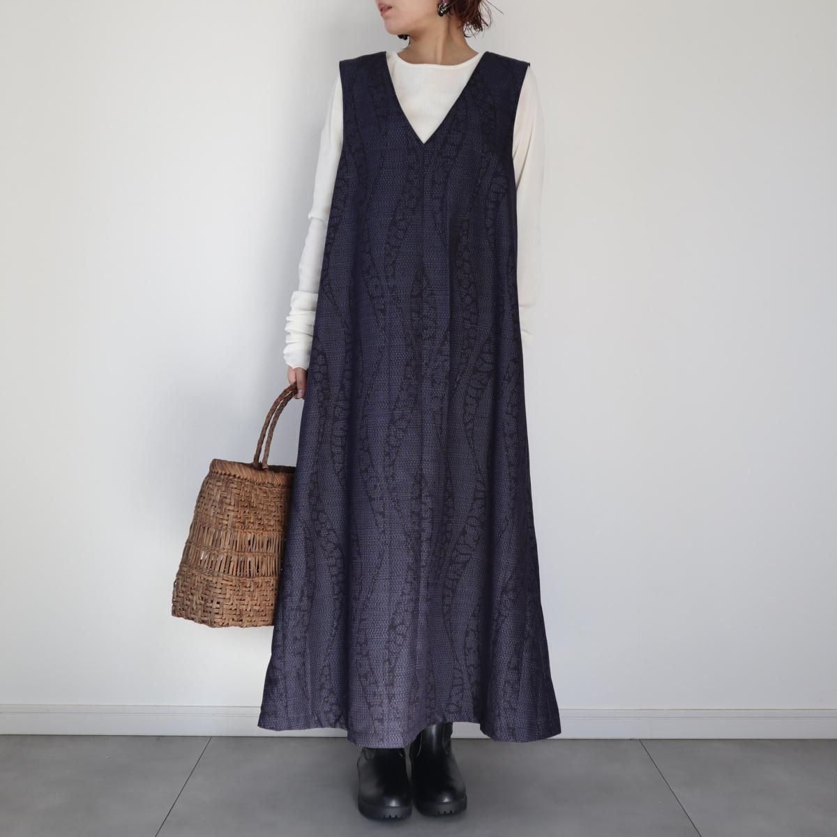 紬のVネックジャンパースカート(藍色に立涌文様・M) 紬のVネックジャンパースカート(藍色に立涌文様・M) SOLD OUT SOLD OUT