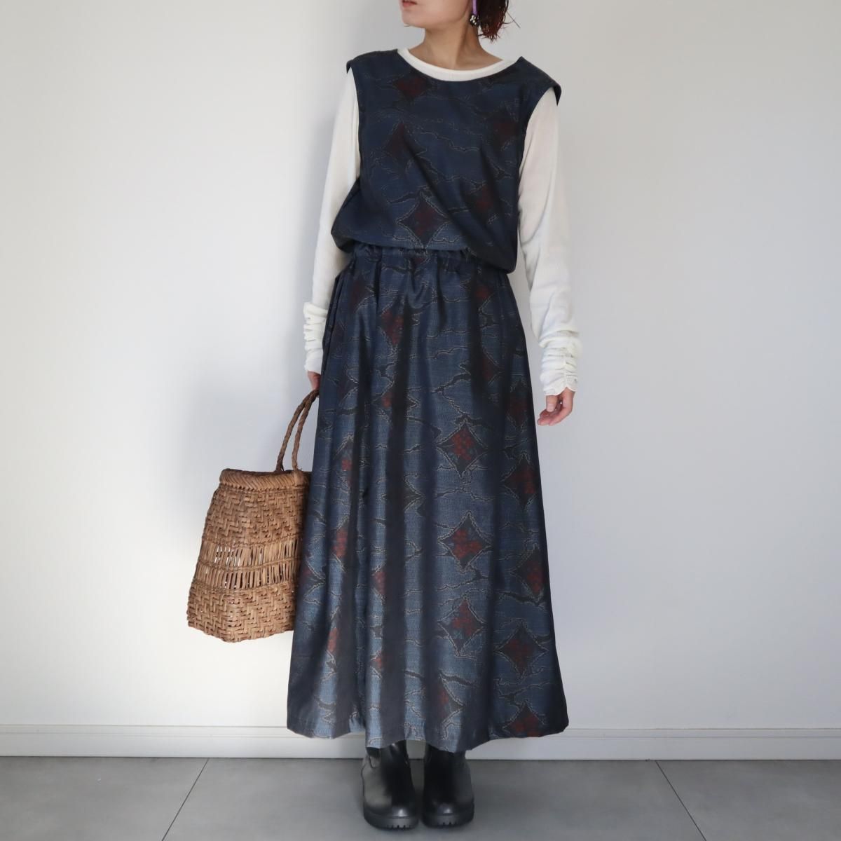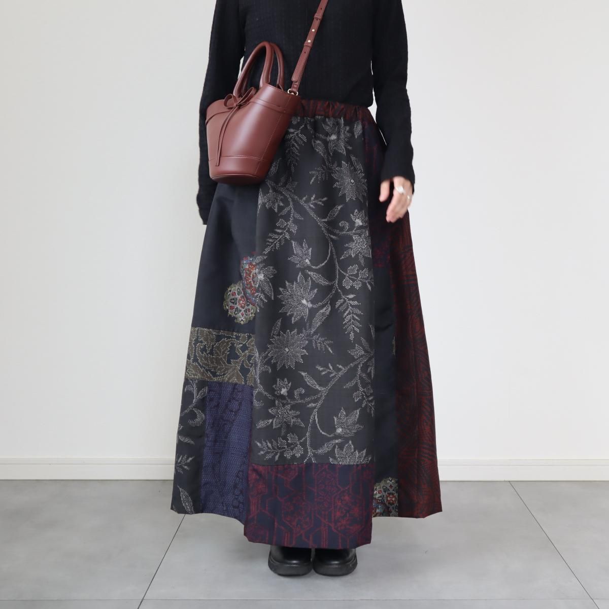 紬のタック入りスカート・マキシ丈(パッチワーク・L) 紬のタック入りスカート・マキシ丈(パッチワーク・L) SOLD OUT SOLD OUT
