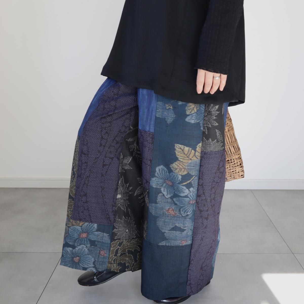 ●ご予約品●紬のワイドパンツ(藍色パッチワーク・M) ●ご予約品●紬のワイドパンツ(藍色パッチワーク・M) SOLD OUT SOLD OUT