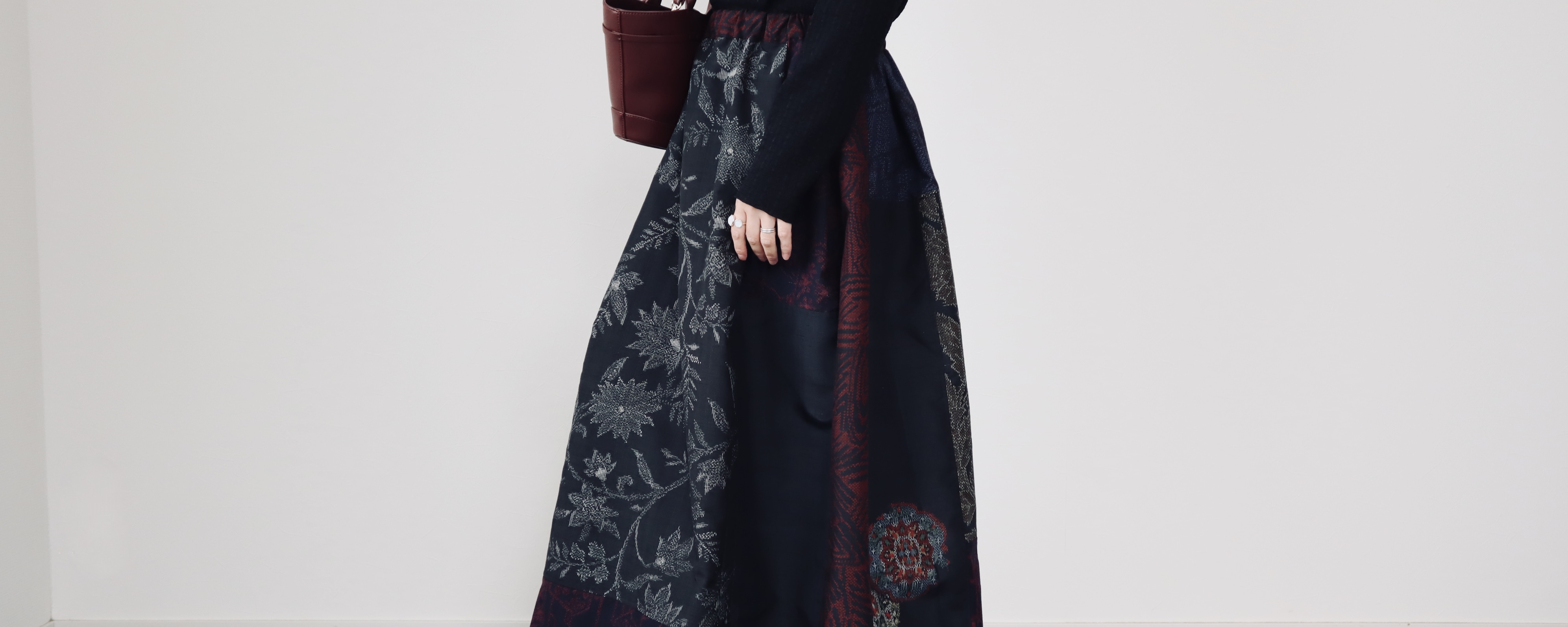 紬のタック入りスカート・マキシ丈(パッチワーク・L) 紬のタック入りスカート・マキシ丈(パッチワーク・L) SOLD OUT SOLD OUT