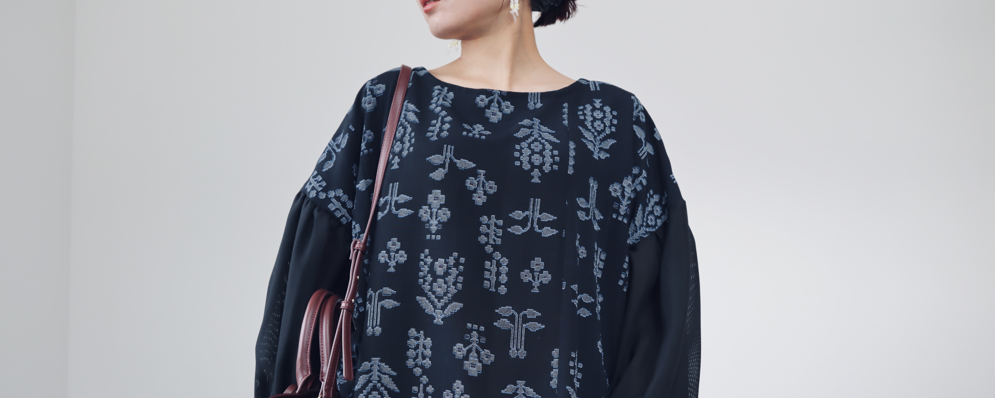 着物のバックテールブラウス・ボリューム袖(袖に絽・M~L)