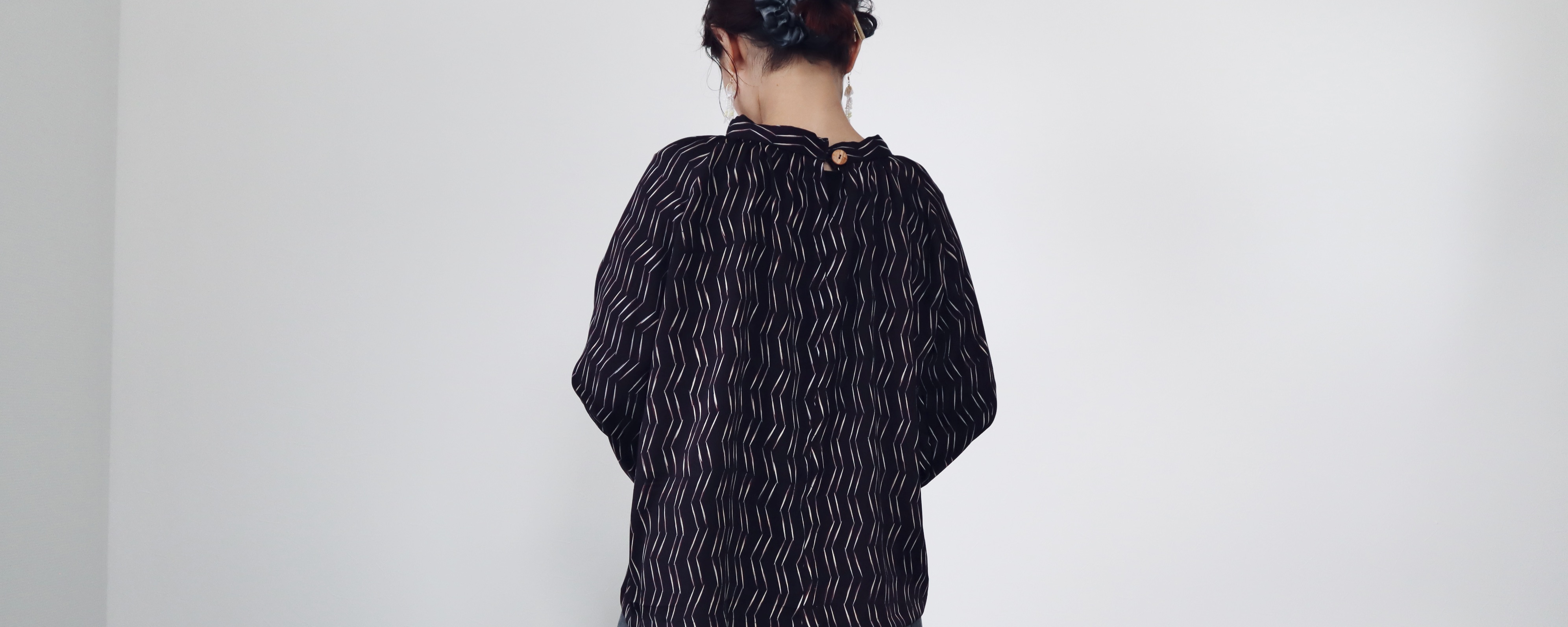 小紋の着物から使ったギャザーブラウス(ジグザグ・M)