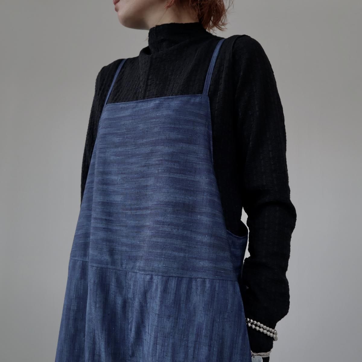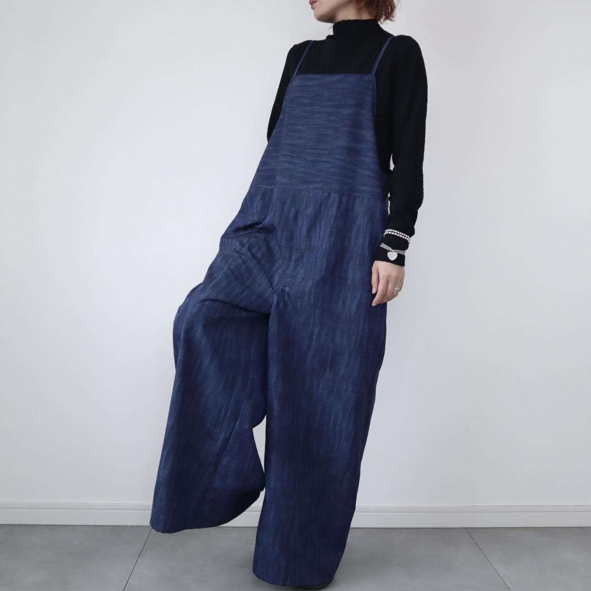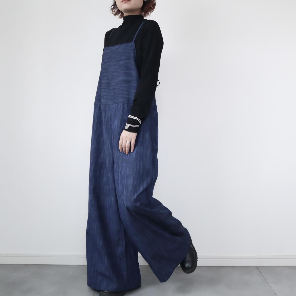 紬のサロペット(藍色グラデーション・L)