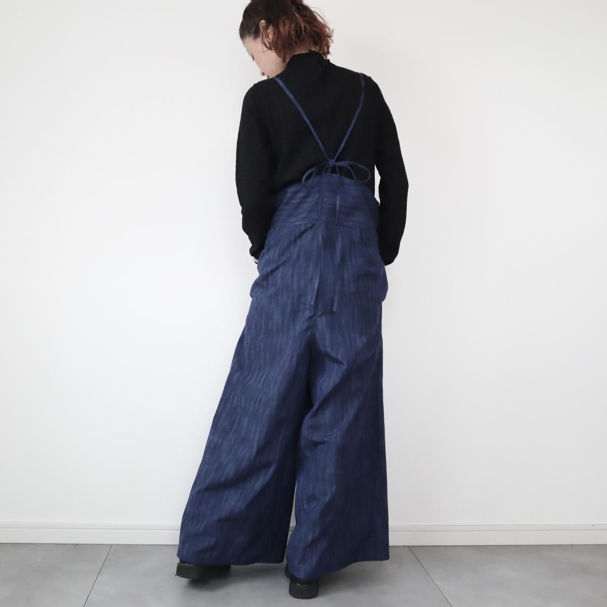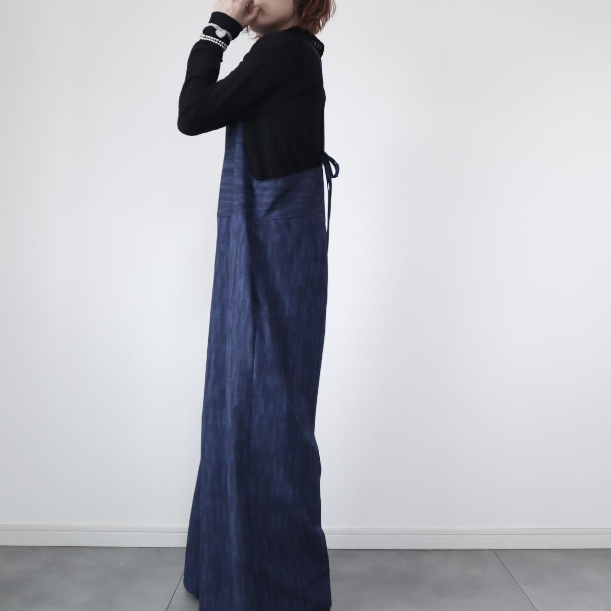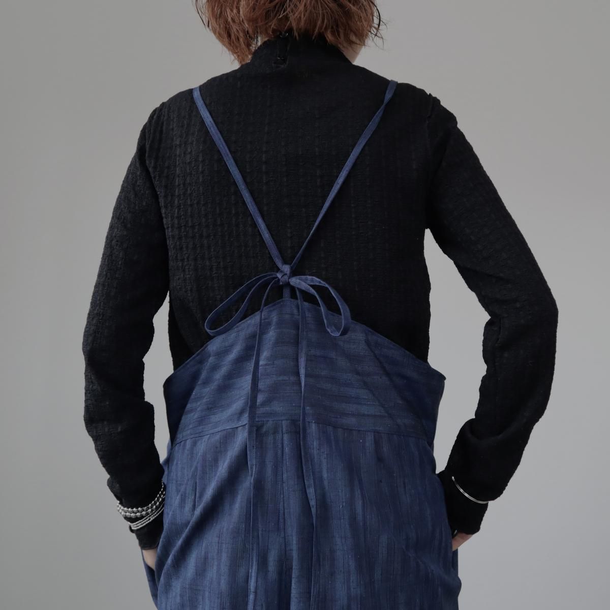 紬のサロペット(藍色グラデーション・L)