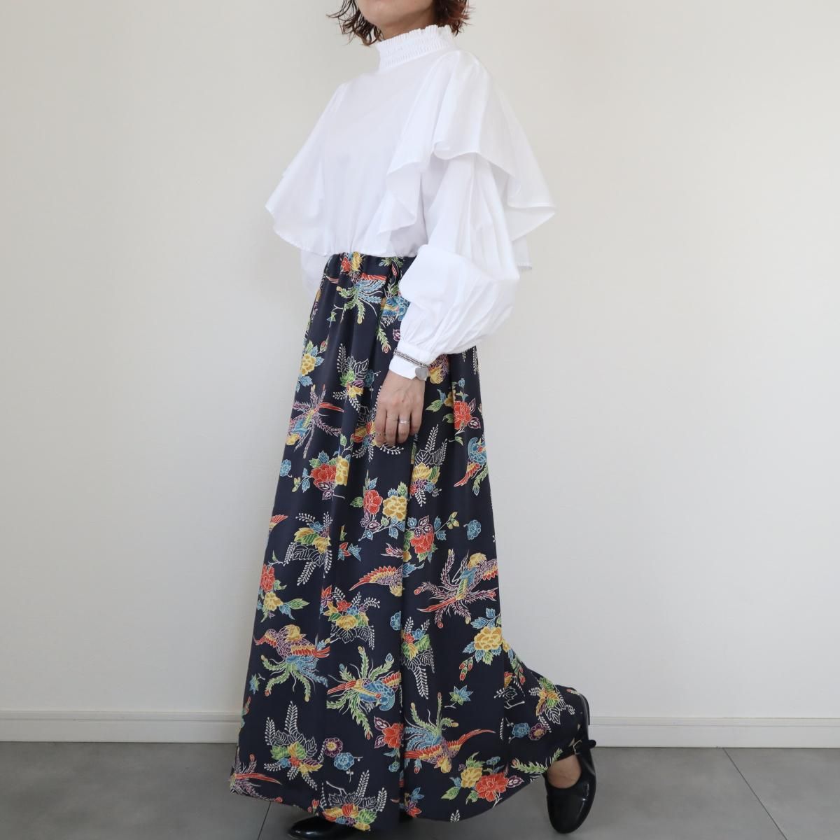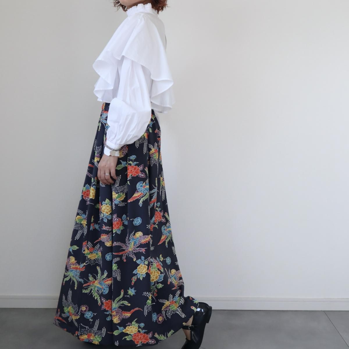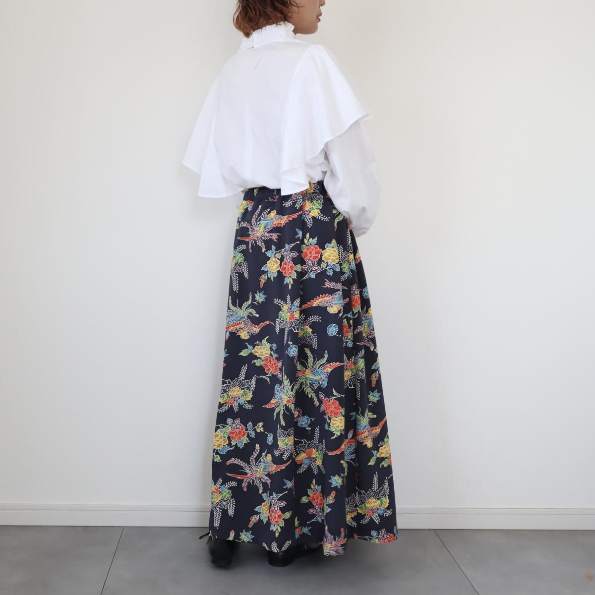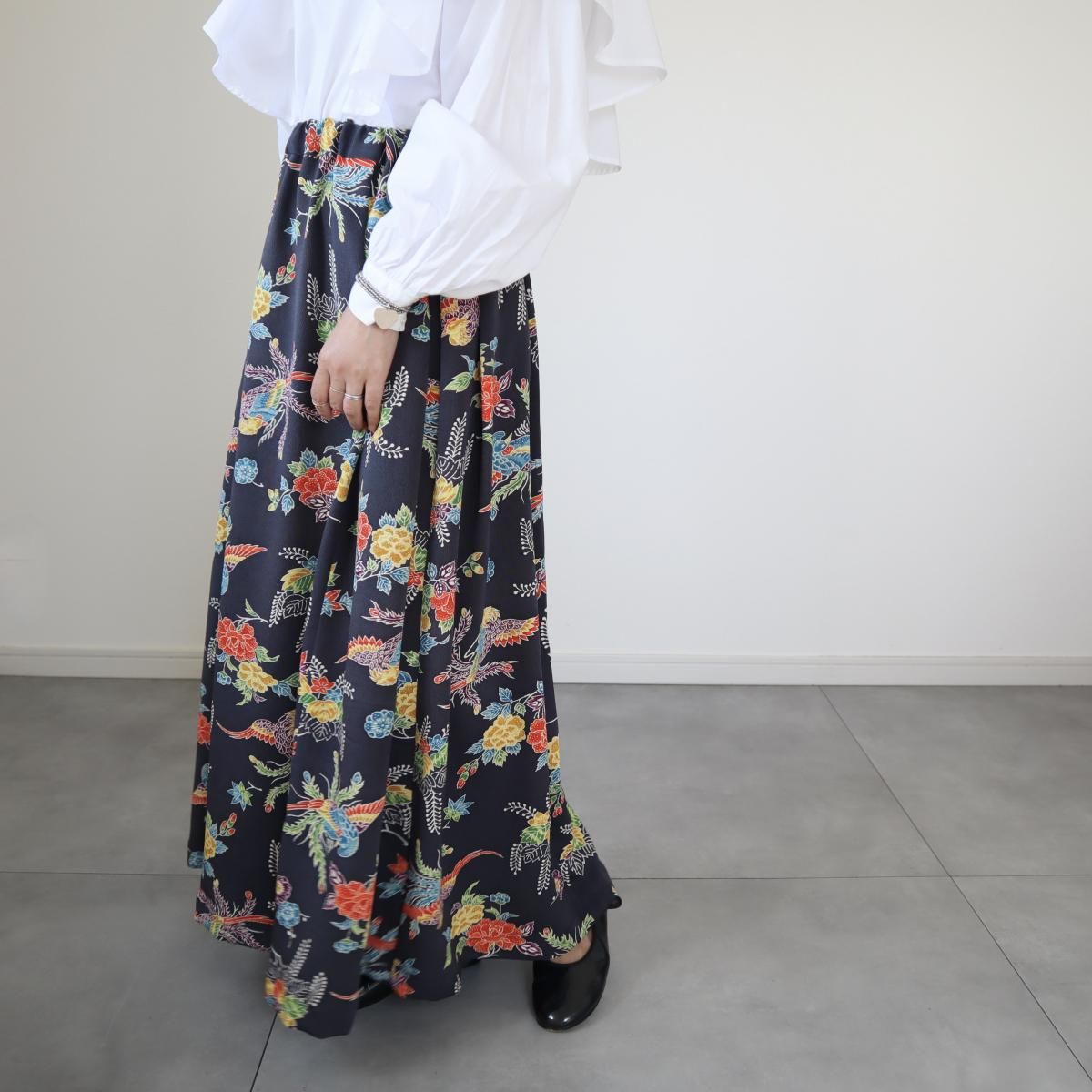 小紋の着物から作ったタック入りスカート・マキシ丈(紅型風・M)