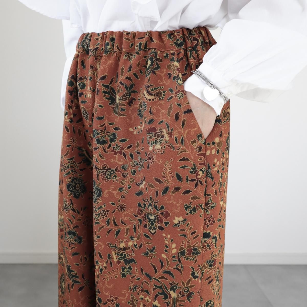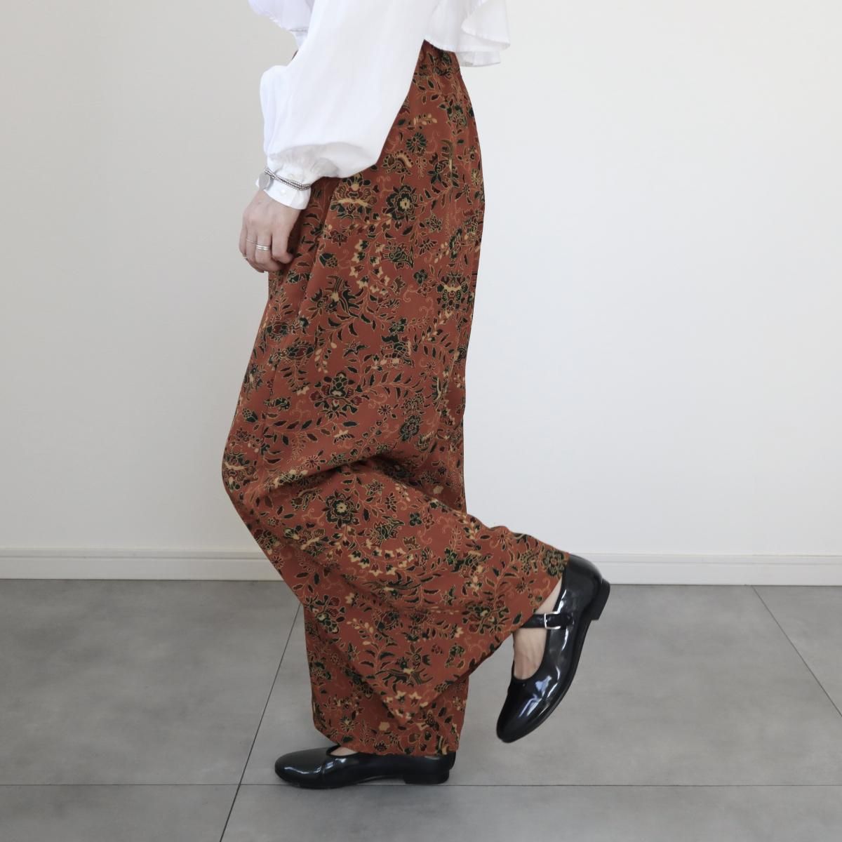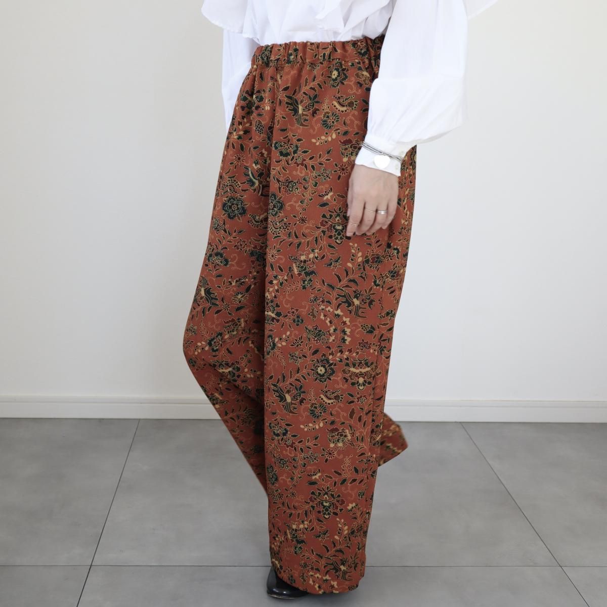 小紋の着物から作ったワイドパンツ(更紗模様・M)