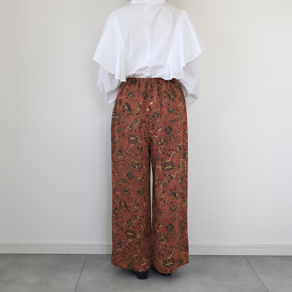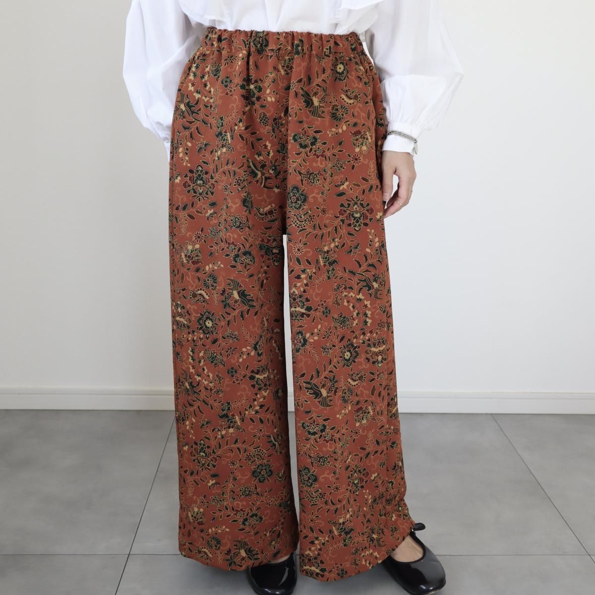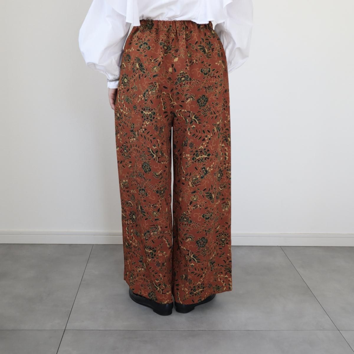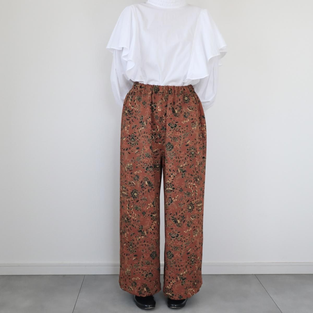 小紋の着物から作ったワイドパンツ(更紗模様・M)