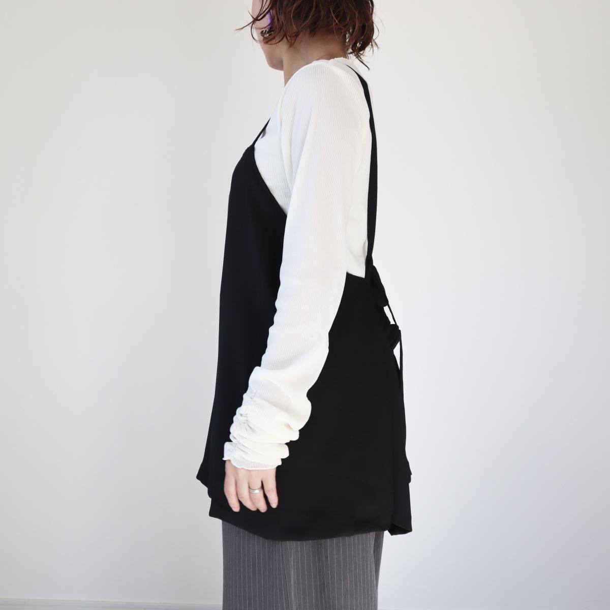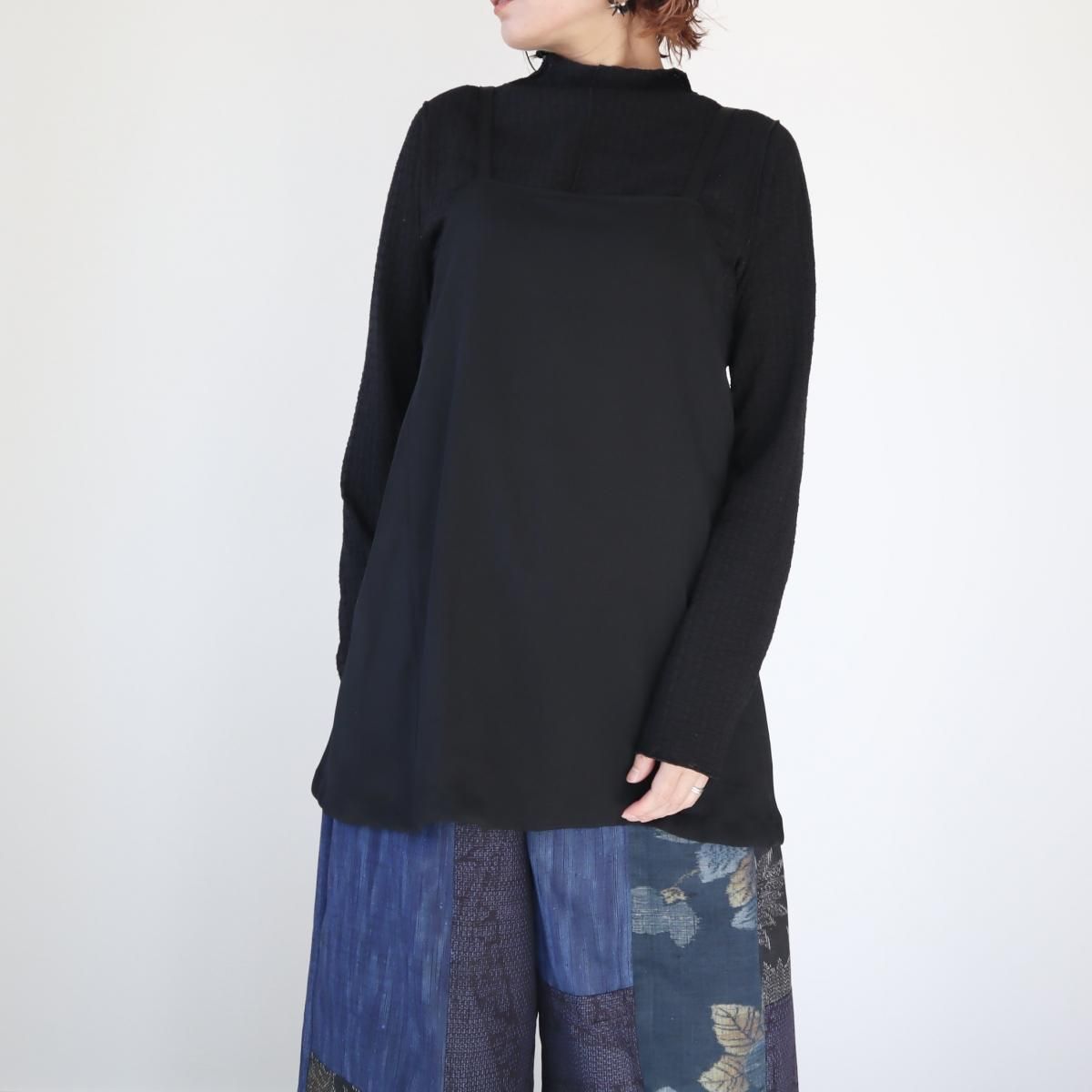 縮緬のすっきりキャミソールブラウス(黒・M)