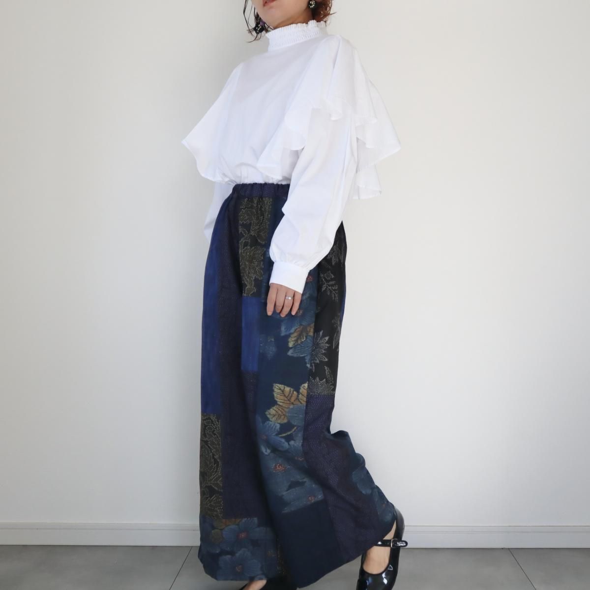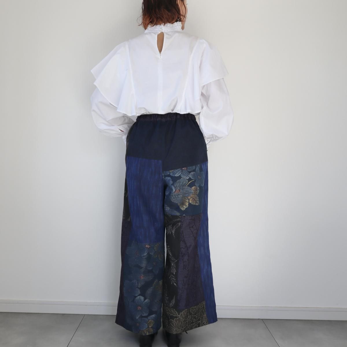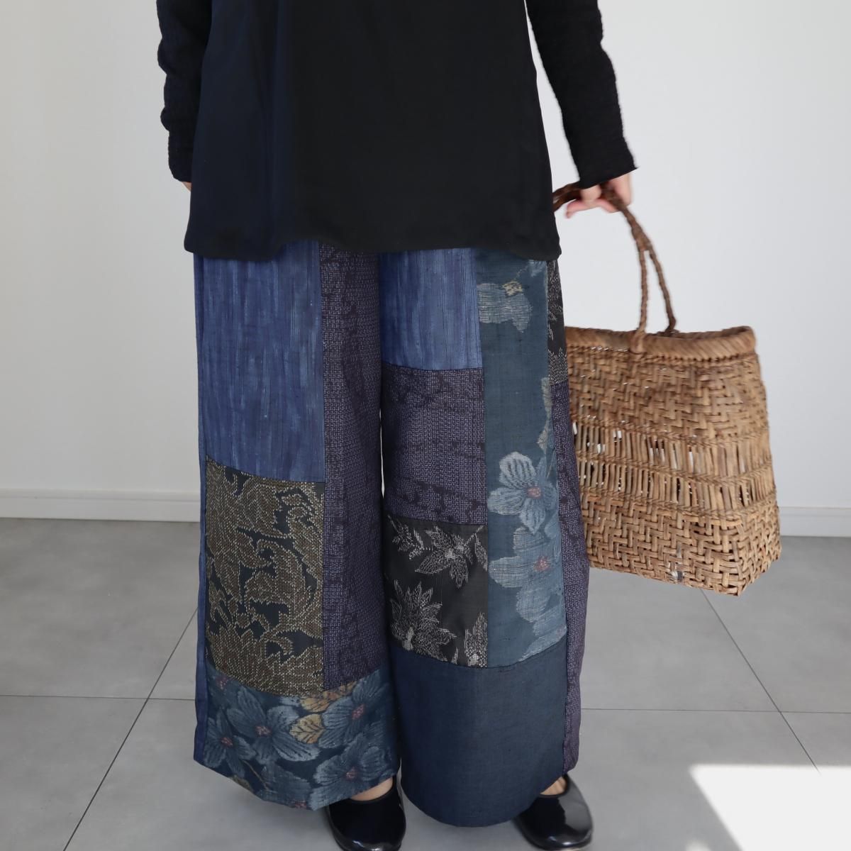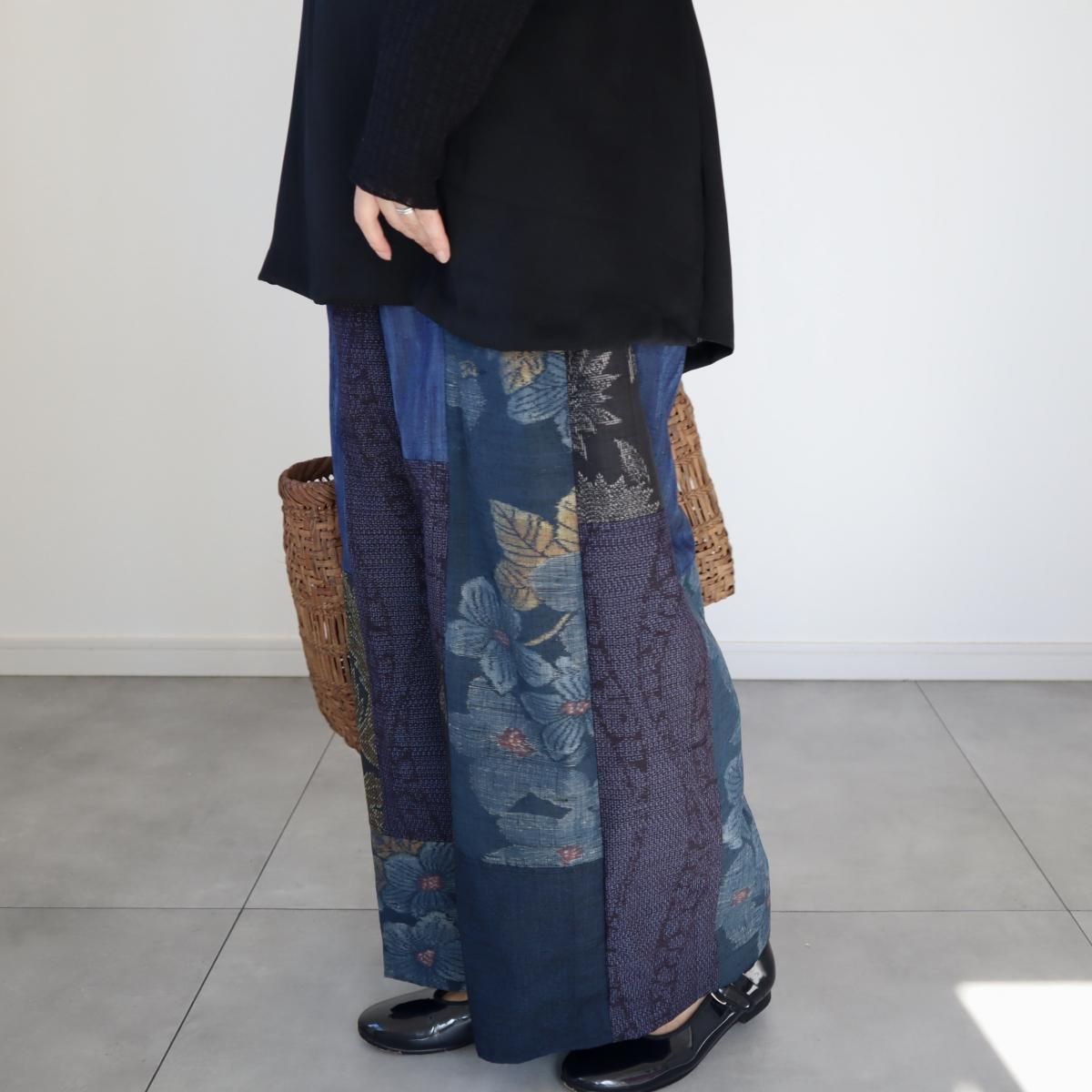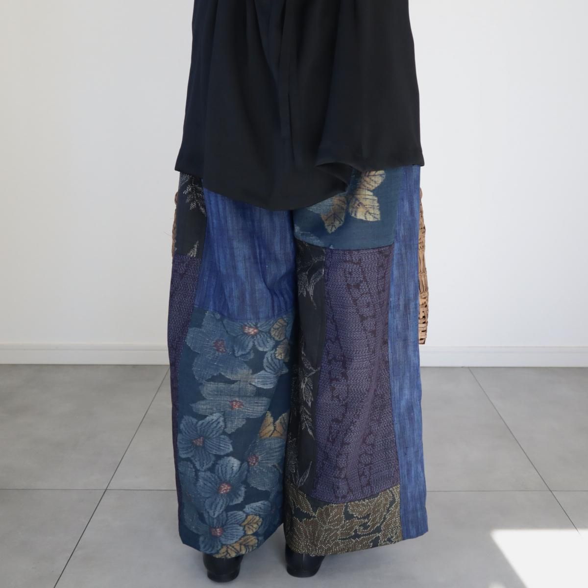 ●ご予約品●紬のワイドパンツ(藍色パッチワーク・M)