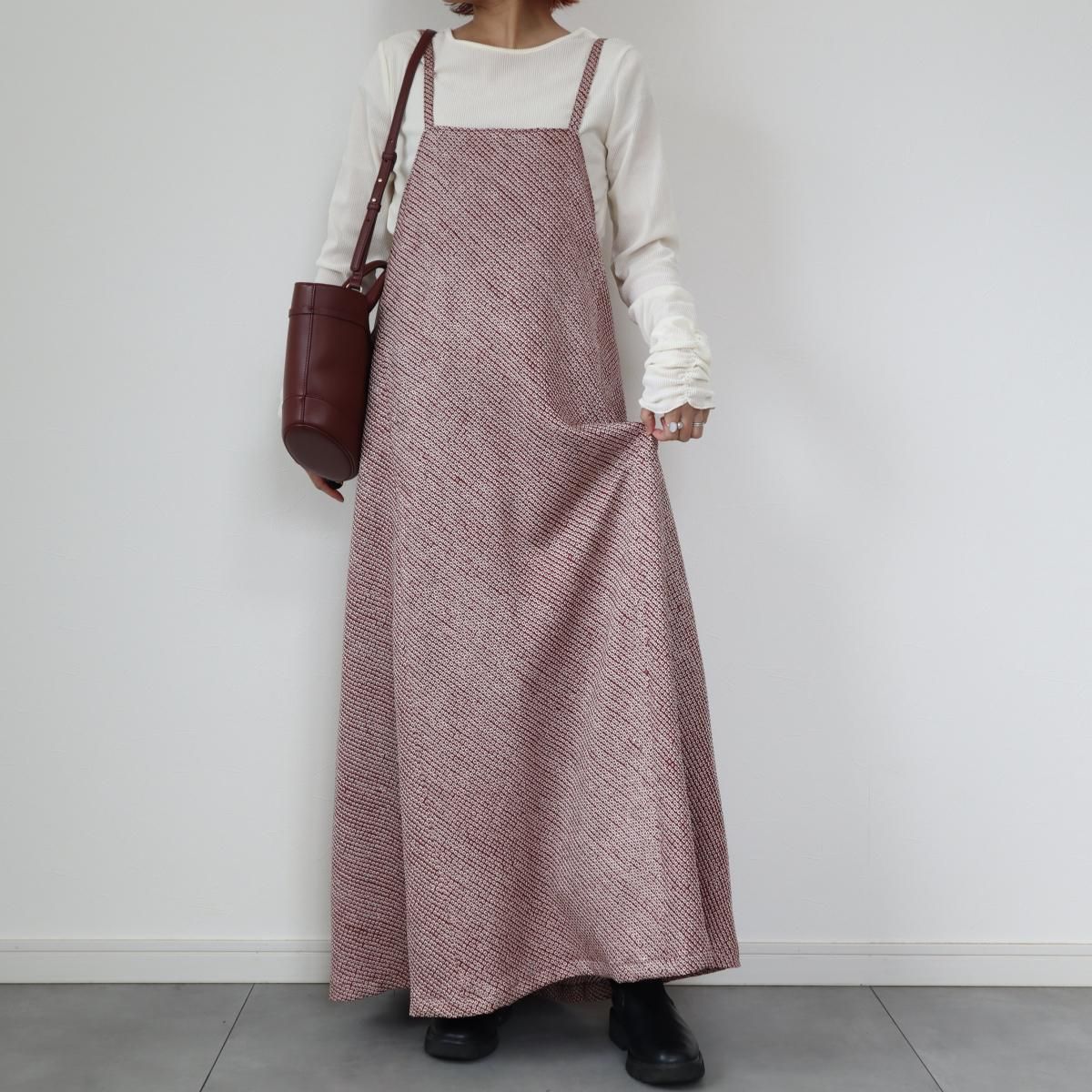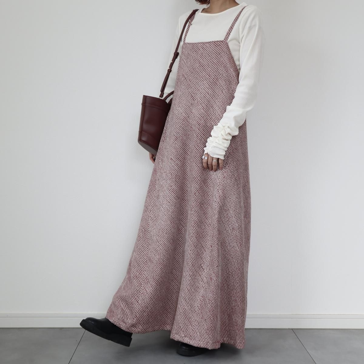 絞りの着物から作ったすっきりキャミソールワンピース(赤茶・M)