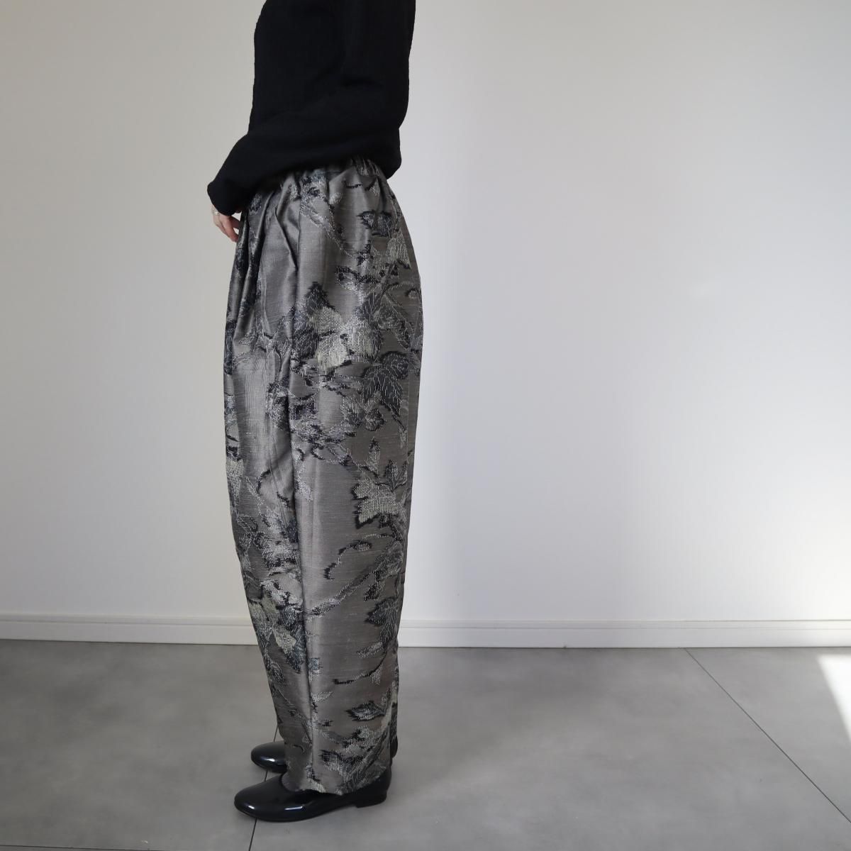 紬のバルーンパンツ(シルバーグレーに花・M)